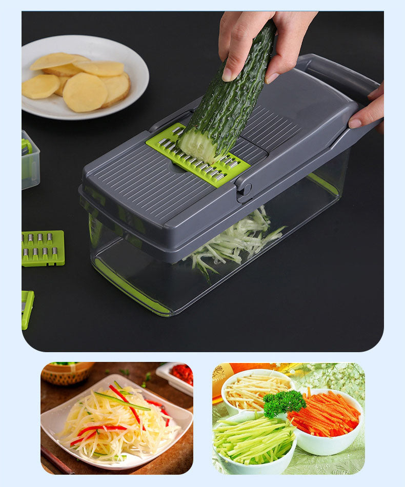 【11-IN-1 KITCHEN TOOLS 】12 accessories, Multi-Functional, 8 interchangeable blades and extra peeler, through which you can get big or small, thick or thin slice, shreds or julienne. The blades allow flexibility to easily Cut, Slice, Dice, Chop Fruits & Vegetables in Shapes & Sizes for Minimum Time. Easy disassembly and installation.